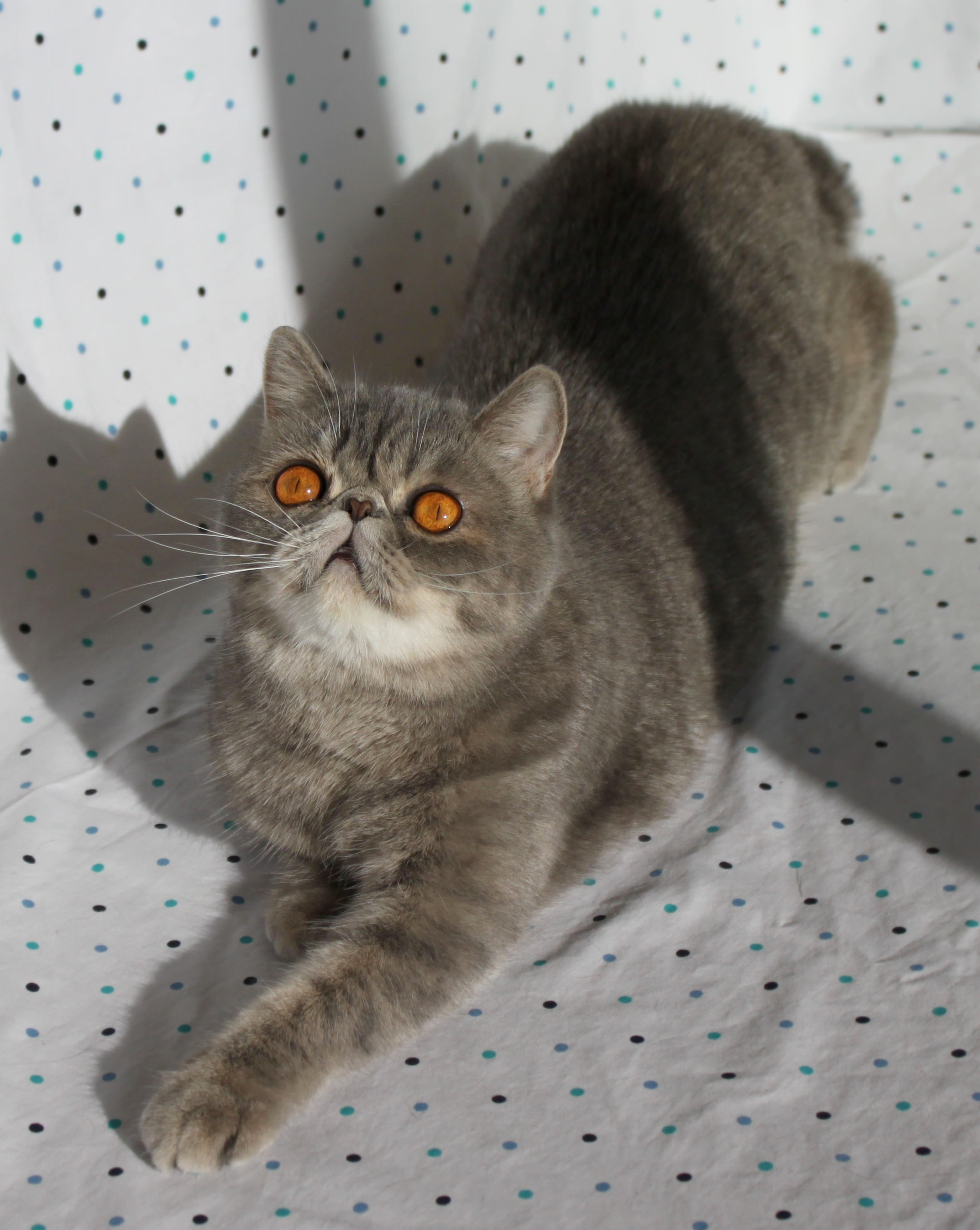 Blue mackerel patch tabby exotic female. Born 9/1/09.